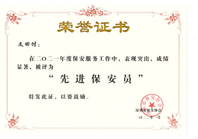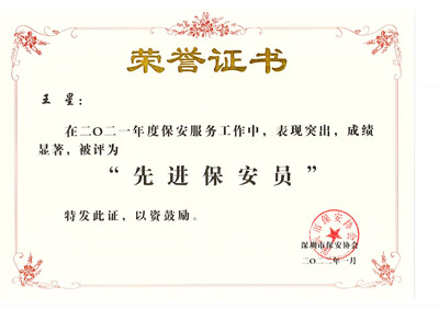 榮獲2017-2023年度深圳市公安局優(yōu)秀保安公司,深圳市保安協(xié)會常務(wù)理事單位(十大常務(wù)理事單位之一)