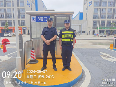 熱烈祝賀我司鐵保宏泰深圳保安公司成功入駐廣州玉湖冷鏈(廣州)交易中心,我司安保人員將負責廣州玉湖冷鏈(廣州)交易中心園區(qū)的安保護衛(wèi),我們將用專業(yè)的服務為客戶保駕護航。