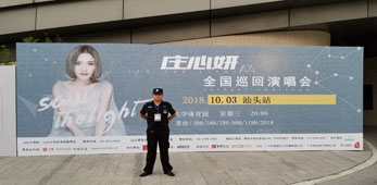 2018莊心妍Saw The Light 全國巡回演唱會-汕頭站,超強(qiáng)配置,巔峰呈獻(xiàn),帶您領(lǐng)略酣暢淋漓的視聽體驗,合唱難忘的經(jīng)典情歌,共享一場非凡的音樂盛宴。10月3日,汕頭大學(xué)體育館隆重舉行。我司派駐安保人員110人參加護(hù)衛(wèi)活動。