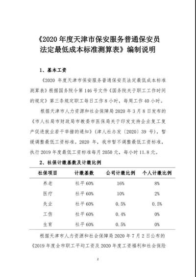 天津市保安協(xié)會發(fā)布《2020年度天津市保安服務(wù)普通保安員法定最低成本標(biāo)準(zhǔn)測算表》及編制說明。