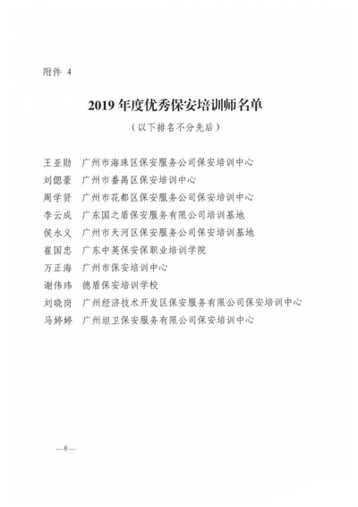 2019年度優(yōu)秀保安培訓師名單