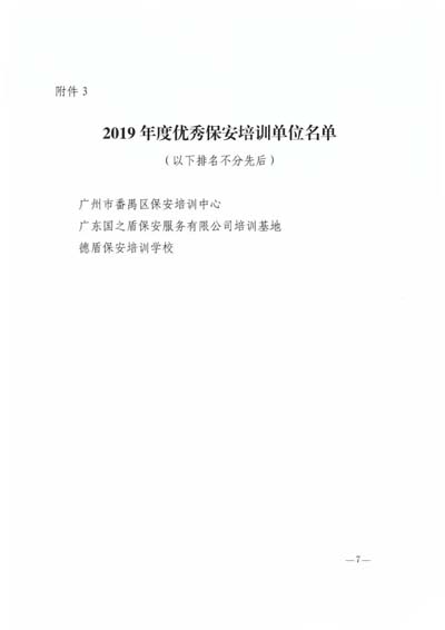 2019年度優(yōu)秀保安培訓單位名單